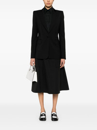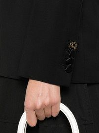 wool blazer Highlights - Black - Front button fastening - Chest welt pocket - Two side flap pockets - Central rear vent Made in Italy Composition Outer: Polyester 100%, Virgin Wool 100% Lining: Acetate 52%, Viscose 48% SIZE & FIT Model measurements Height 5 ft 9 in(1.76 m) Bust/Chest 31.88 in(81 cm) Hips 35.43 in(90 cm) Waist 24.8 in(63 cm) FittingInformation Designed for a slim fit that sits just away from the body offering a close yet comfortable fit The internal shoulder pads offer a structured shape Made from a midweight non-stretch fabric