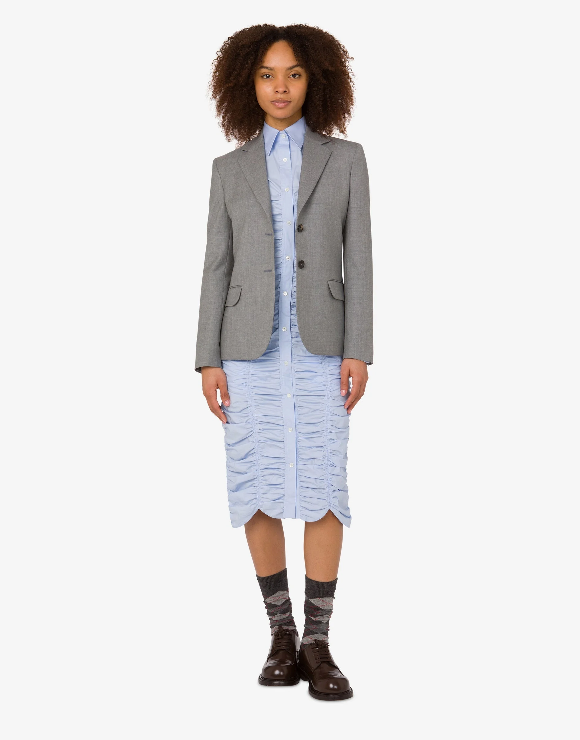 THE FALL/WINTER 2025 PRE-COLLECTION FEATURES THE SINGLE-BREASTED WOOL CANVAS JACKET WITH A BUTTON ON THE BOTTOM SLEEVE PERSONALIZED WITH THE ARCHIVAL LAUREL WREATH LOGO. PRODUCT DETAILS REGULAR FIT - REVERS - METAL LAUREL CROWN BUTTON - TWO FLAP POCKETS ON FRONT - BUTTONS ON BOTTOM SLEEVE - PADDED SHOULDER STRAPS - TWO SLITS ON BACK - TWO INSIDE POCKETS - LINED FABRIC: 100% PURE WOOL - LINING: 60% CELLULOSE ACETATE, 40% CUPRO SKU: AEF252E V051355380505 FITTING & DIMENSIONS - MODEL HEIGHT: 177 CM - MODEL BUST: 81 CM - MODEL WAIST: 63 CM - MODEL HIPS: 92 CM - MODEL SIZE: 40