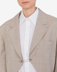 WOOL CHECK FLANNEL JACKET WITH AN OVERSIZED SAFETY PIN IN BRANDED METAL SERVING AS A CLOSURE. THE BACK IS SLIGHTLY LONGER. REGULAR FIT REMOVABLE SAFETY PIN FRONT POCKET BUTTONED SLEEVE HEM PADDED SHOULDERS BACK SLIT LINED TWO INTERNAL POCKETS FABRIC: 100% PURE WOOL LINING: 60% CELLULOSE ACETATE, 40% CUPRO CODE: AEF251D 050604172515 FIT MODEL BUST SIZE: 80 CM MODEL HEIGHT: 180 CM MODEL HIPS: 89 CM MODEL SIZE: 40 CM MODEL WAIST: 60 CM