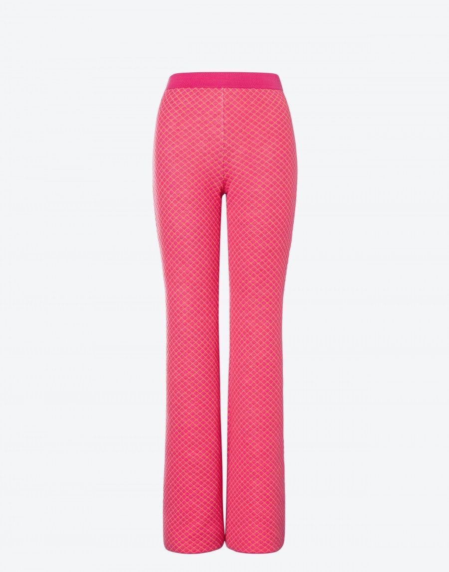 New Zealand merino wool flare trousers with diamond pattern inlay. - Slim fit - Regular waist - Flared hem - Ribbed waistband Fabric : 100% Pure wool Code: 221E A038205001206 Fit - Slim fit