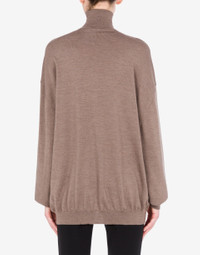 HIGH-NECK SWEATER IN EXTRA-FINE MERINO WOOL WITH AN OVERSIZED FIT. THE PIECE IS PERSONALIZED WITH THE LETTER M OF MOSCHINO IN GOLD GALVANIC. PRODUCT DETAILS OVERSIZE FIT - METAL M EMBROIDERED ON THE FRONT - DROPPED SHOULDERS FABRIC: 100% PURE WOOL SKU: AEF242D J090754010082 FITTING & DIMENSIONS - MODEL HEIGHT: 1.78 CM - MODEL BUST: 82 CM - MODEL WAIST: 60 CM - MODEL HIPS: 88 CM - MODEL SIZE: 40
