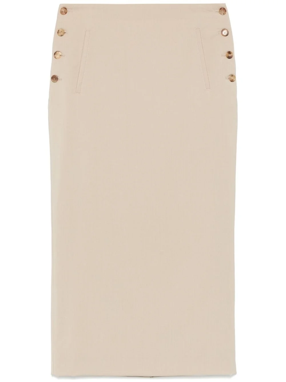 virgin-wool midi skirt Highlights - Light beige - Side button fastening - Two front welt pockets - Rear flap pocket - Rear welt pocket Made in Italy Composition Virgin Wool 100% SIZE & FIT Model measurements Height 5 ft 10 in(1.77 m) Bust/Chest 29.92 in(76 cm) Hips 34.25 in(87 cm) Waist 23.62 in(60 cm) FittingInformation This midi-length skirt is intended to be worn just below the waist The vented hem offers movement at the rear Made from a midweight non-stretch fabric