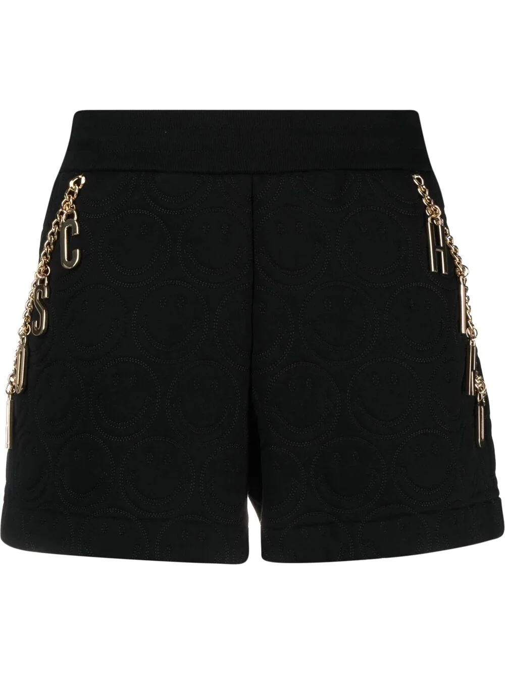 x Smiley fleece shorts Time to smile. Crafted from cotton fleece, these shorts boast Moschino's gold-tone lettering and quilted-effect Smiley© embroidery that will surely lighten everyone's mood. A cheerful design. Imported Composition Cotton 100% SIZE & FIT Model measurements Height 5 ft 10 in(1.77 m) Bust/Chest 35.03 in(89 cm) Hips 35.03 in(89 cm) Waist 23.62 in(60 cm) Measurement FRONT RISE 11.02 in(28 cm) LENGTH 14.56 in(37 cm) WAIST 29.92 in(76 cm) FittingInformation This piece fits true to size. We recommend you get your regular size Designed to be fitted at the waist and hips, loose over the leg Made with a mid-weight fabric Washing instructions Hand Wash