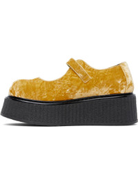 Crushed velvet Mary Jane-style loafers in yellow. · Pin-buckle strap at vamp · Buffed leather lining · Crepe-rubber platform sole · Platform: H2" Supplier color: Ochre Upper: textile. Sole: rubber. Made in Italy 251720F121010