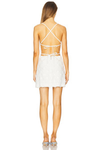 - Self: 66% polyester 34% cotton Lining: 100% cotton - Dry clean only - Fully lined - Hidden back zipper closure and dual lace-up tie closures - Open back - Midweight poplin fabric with tonal 3D detailing - Revolve Style No. MSGX-WD24 - Manufacturer Style No. 3841MDA43 257121