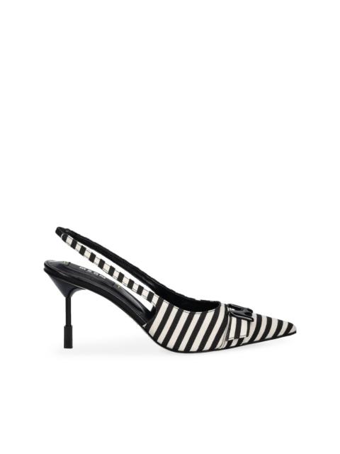 90mm striped pumps Highlights - Black - Elasticated slingback strap - High heel - Branded leather insole - Applique logo Made in Italy Composition Outer: Fabric 100% Sole: Calf Suede 100%, Rubber 100% Lining: Calf Leather 100%