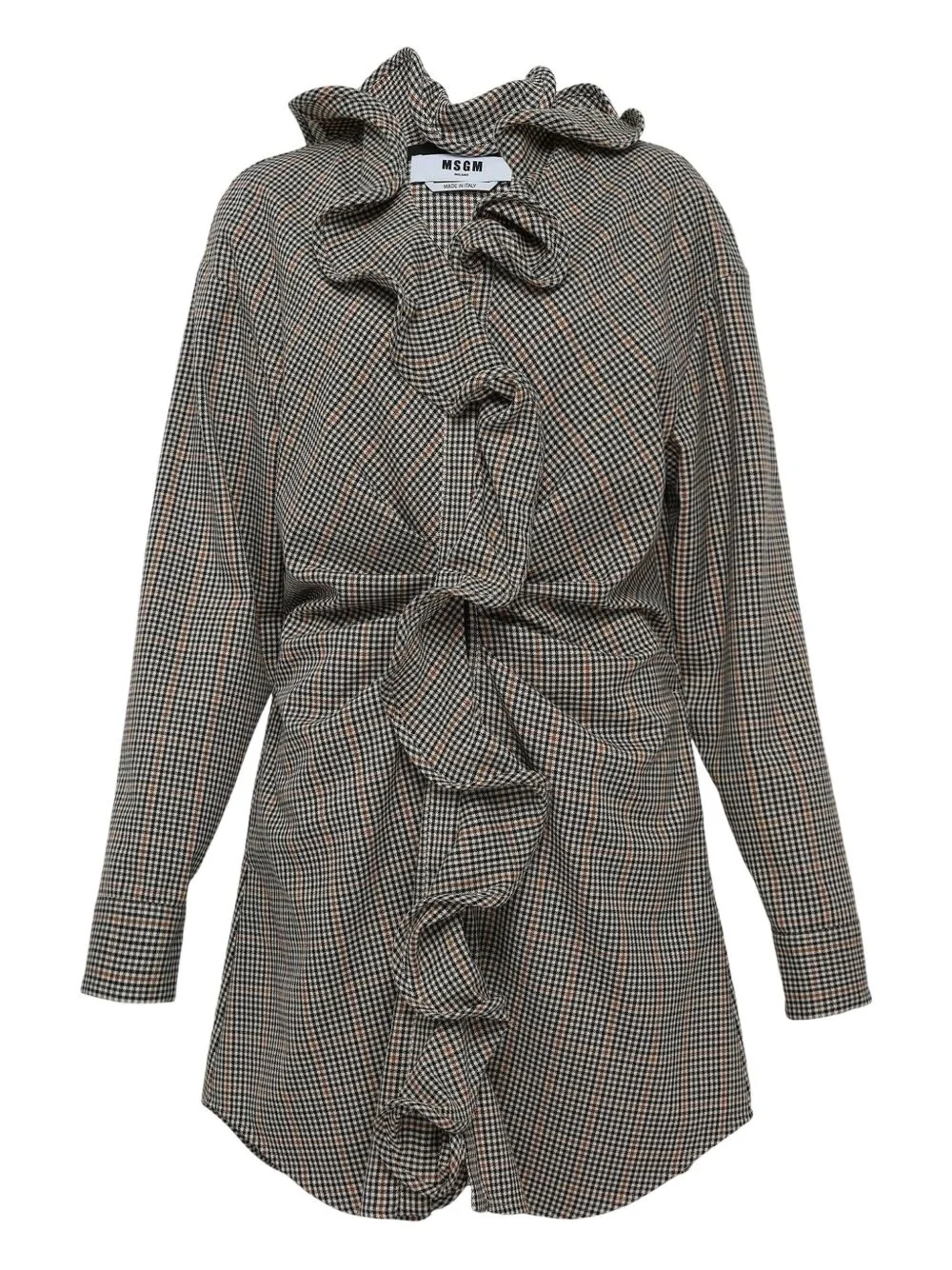 Abito ruffled detailed dress Highlights - Brown/black - Check pattern - Ruffle detail - Tie detail - Long sleeves - Button fastening Imported Composition Fabric 100% Washing instructions Read Manufacturer Guidelines