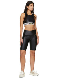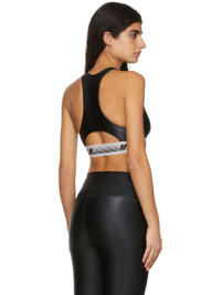 Stretch nylon jersey sports bra. · Scoop neck · Jacquard knit logo at elasticized hem · Cut-out at racer back Supplier color: Black 79% polyamide, 21% elastane.