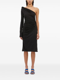 asymmetric midi dress Highlights - Black - Side zip fastening - One-shoulder - Draped design - Below-knee length Imported Composition Fabric 100%