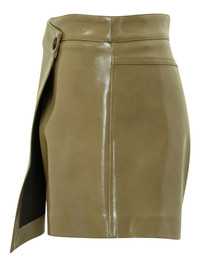 asymmetric patent leather skorts Highlights - Olive green - Patent leather - Asymmetric hem - Button fastening - High waist - Wrap-around front Made in Italy Composition Polyester 100% Washing instructions Read Manufacturer Guidelines