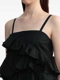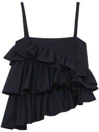 asymmetric ruffle top Highlights - Black - Cotton - Spaghetti straps - Square neck and back - Fully ruffled - Asymmetric body - Asymmetric hem Made in Italy Composition Cotton 100% SIZE & FIT FittingInformation Designed for a relaxed fit, this piece allows for comfort and movement when worn Made from a midweight non-stretch fabric This piece fits true to size – take your usual size