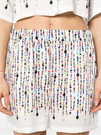 bead-print shorts Highlights - White/multicolour - Satin weave - All-over bead print - Elasticated waistband - Two diagonal pockets to the sides - Thigh-length Made in Italy Composition Outer: Polyester 100% Lining: Polyester 100% SIZE & FIT Model measurements Height 5 ft 11 in(1.8 m) Bust/Chest 33.07 in(84 cm) Hips 37.4 in(95 cm) Waist 25.19 in(64 cm) FittingInformation Designed for a loose fit, offering comfort and movement when worn The elasticated waist allows for a comfortable fit Made from a lightweight non-stretch fabric This piece fits true to size – take your usual size Washing instructions Hand Wash