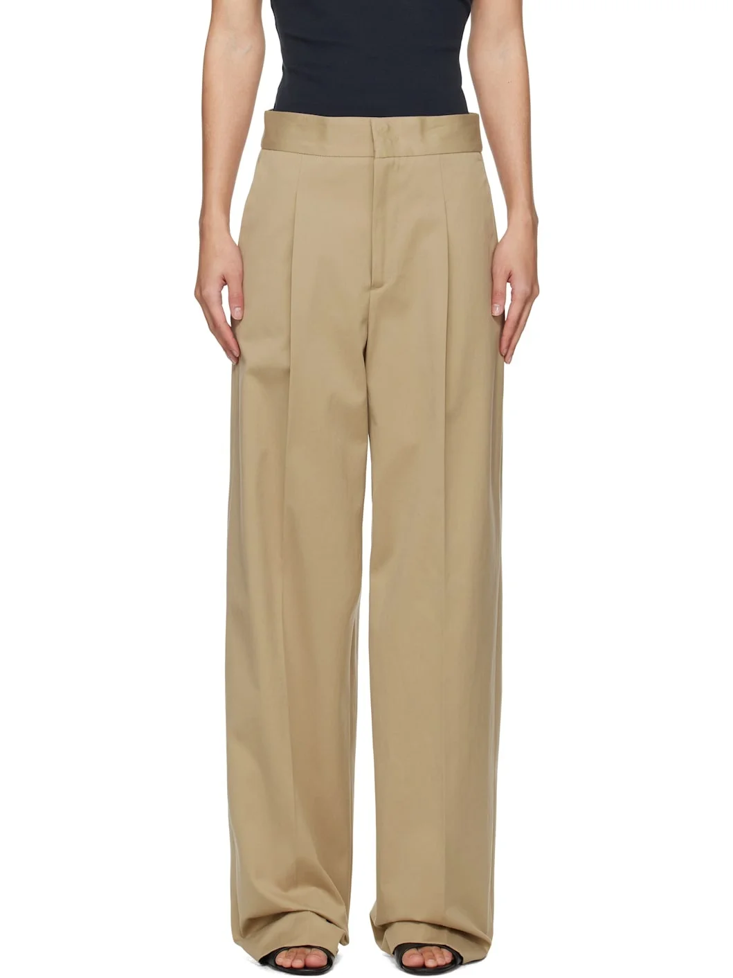 Stretch cotton faille trousers. · Wide-leg · High-rise · Belt loops · Four-pocket styling · Zip fly · Pleats at front Supplier color: Beige 99% cotton, 1% elastane. Made in Italy 251443F087003