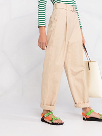 belted straight-leg trousers Don't be afraid to seek out more sophisticated styling. MSGM makes it easy with these belted straight-leg trousers. You scrub up well. Made in Italy Composition Cotton 65%, Linen/Flax 35% SIZE & FIT Model measurements Height 5 ft 10 in(1.79 m) Bust/Chest 31.49 in(80 cm) Hips 35.03 in(89 cm) Waist 24.01 in(61 cm) FittingInformation This piece fits true to size. We recommend you get your regular size Designed to be fitted at the waist and hips, loose over the leg Made with a mid-weight non-stretch fabric Washing instructions Dry Clean Only