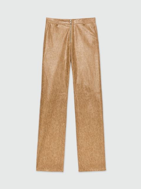 High-waisted crackled-effect faux leather trousers. Front zip closure, slant pockets and back welt pockets. Tone-on-tone leather patch on the back. Regular fit. The model is wearing size S/40. CODE: 3941MDP11-257616-99 Details and fit - 95% VI / 5% AF