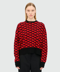 Crew neck sweater in viscose blend yarn with an all-over "TheMwave" jacquard pattern. Contrasting collar and trim. Regular fit. The model wears size S/40. CODE: 3941MDM215-257786-99 Details and fit - 70% VI / 30% PL