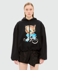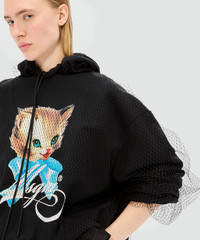 Cotton jersey sweatshirt with a loose-knit tulle layer and a "Cute Kitty" print on the front. Drawstring hood and elasticated hem. Dropped shoulders and long sleeves. Oversized fit. Model wears size S/40. CODE: 3941MDM74-257799-99 Details and fit - 100% CO