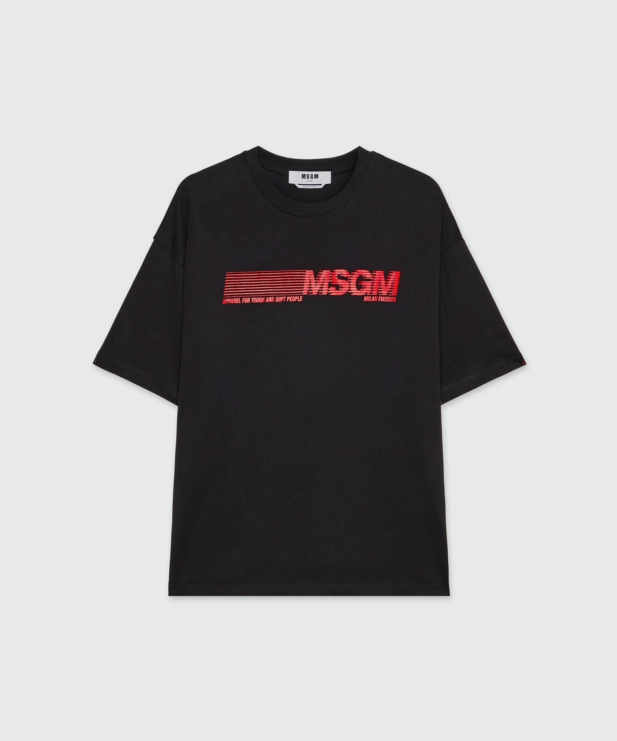 Crew-neck T-shirt made of solid-color cotton jersey with a contrasting MSGM graphic on the chest. Oversized fit. The model is wearing size S/40. CODE: 3942MDM105N-257798-99 Details and fit - 100% CO