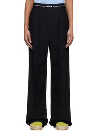 Plain-woven stretch virgin wool trousers. · Jacquard logo and stripes at elasticized waistband · Three-pocket styling · Mock fly · Pleats at front · Creased legs · Zip closure at side seam · Partial crepe lining Supplier color: Black Body: 96% virgin wool, 4% elastane. Lining: 100% polyester. Made in Italy 251443F087004