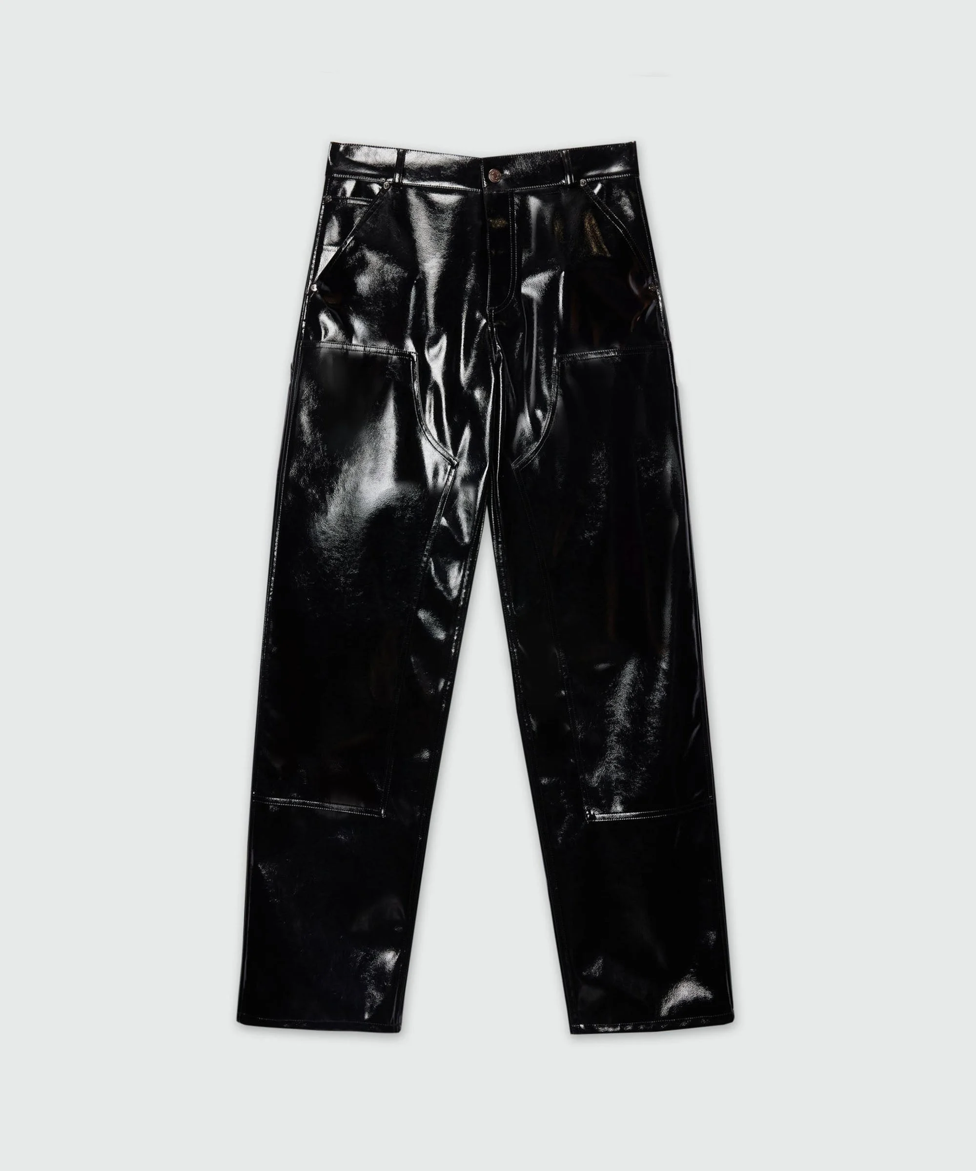 Vinyl trousers with a baggy five-pocket design and exposed topstitching. Button and concealed zip fly. Oversized fit. Model wears size S/40. CODE: 3941MDP17-257614-99 Details and fit - 100% PL