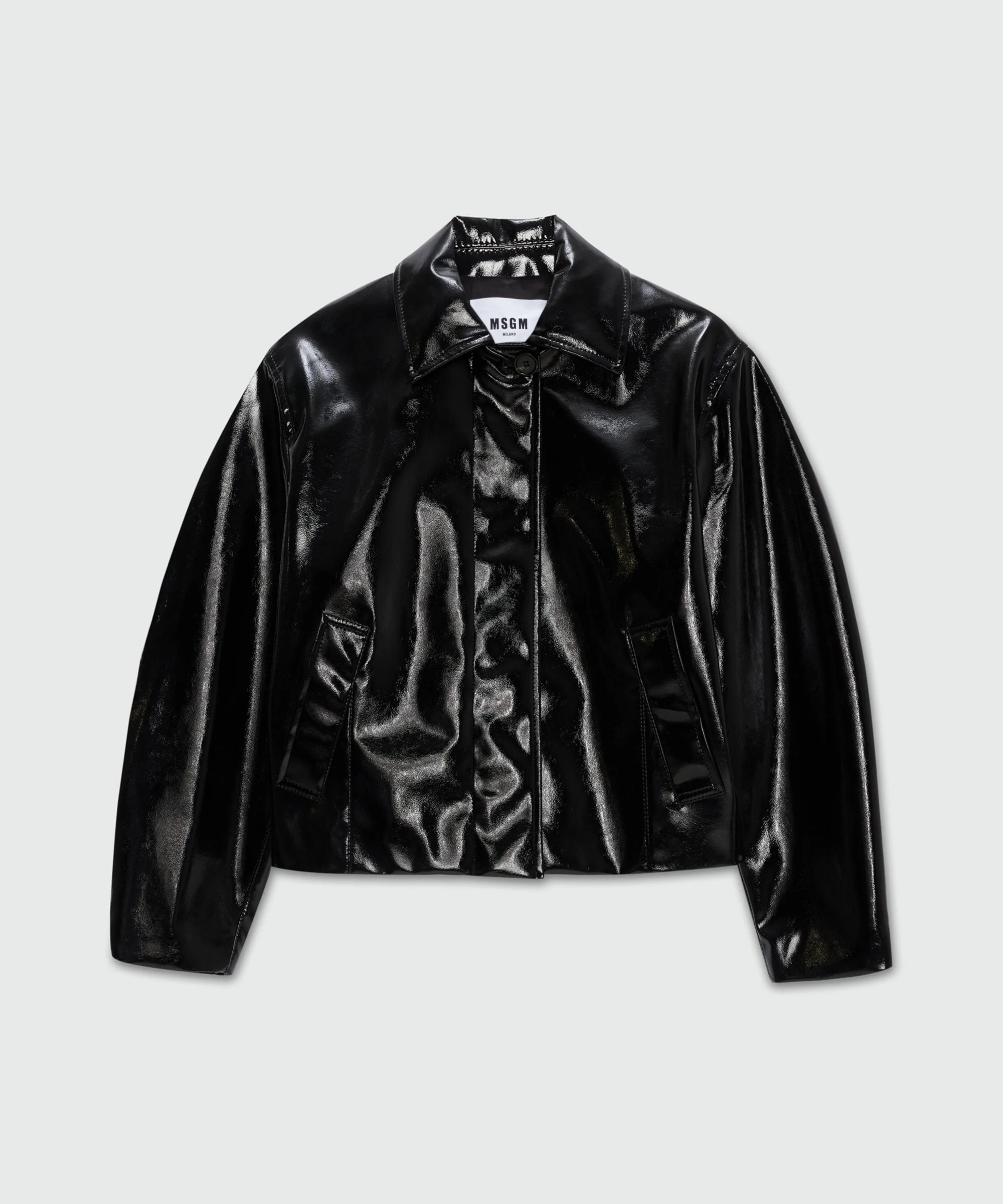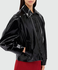 Vinyl jacket with a classic collar, long sleeves, a covered zip front closure and an exposed button at the neck. Side welt pockets. Oversized fit. The model is wearing a size S/40. CODE: 3941MDH06X-257614-99 Details and fit - 100% PL