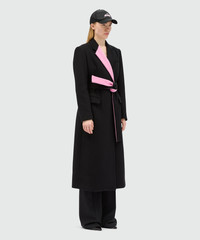 Long wool coat with contrasting peak lapels. It fastens with a matching belt at the waist, flap pockets, and a back vent. Regular fit. The model is wearing size S/40. CODE: 3941MDC10Y-257603-99 Details and fit - 75% WV / 25% PA