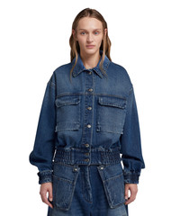 Blue denim cropped jacket with used effect enriched by large pockets applied to the front. Central closure with visible buttons. Elastic bottom and cuffs. Oversize fit. CODE: 3641MDH233L-247292-89 Details and fit - 100% CO - Model wears size S / 40 (Height: 178 cm - Chest: 80 cm - Waist 59 cm - Hips: 90 cm) - For information about a product, care and materials, please call us at +39 02 9475 5343 or contact us through Chat. You can also get help by filling out the form in the Help section.