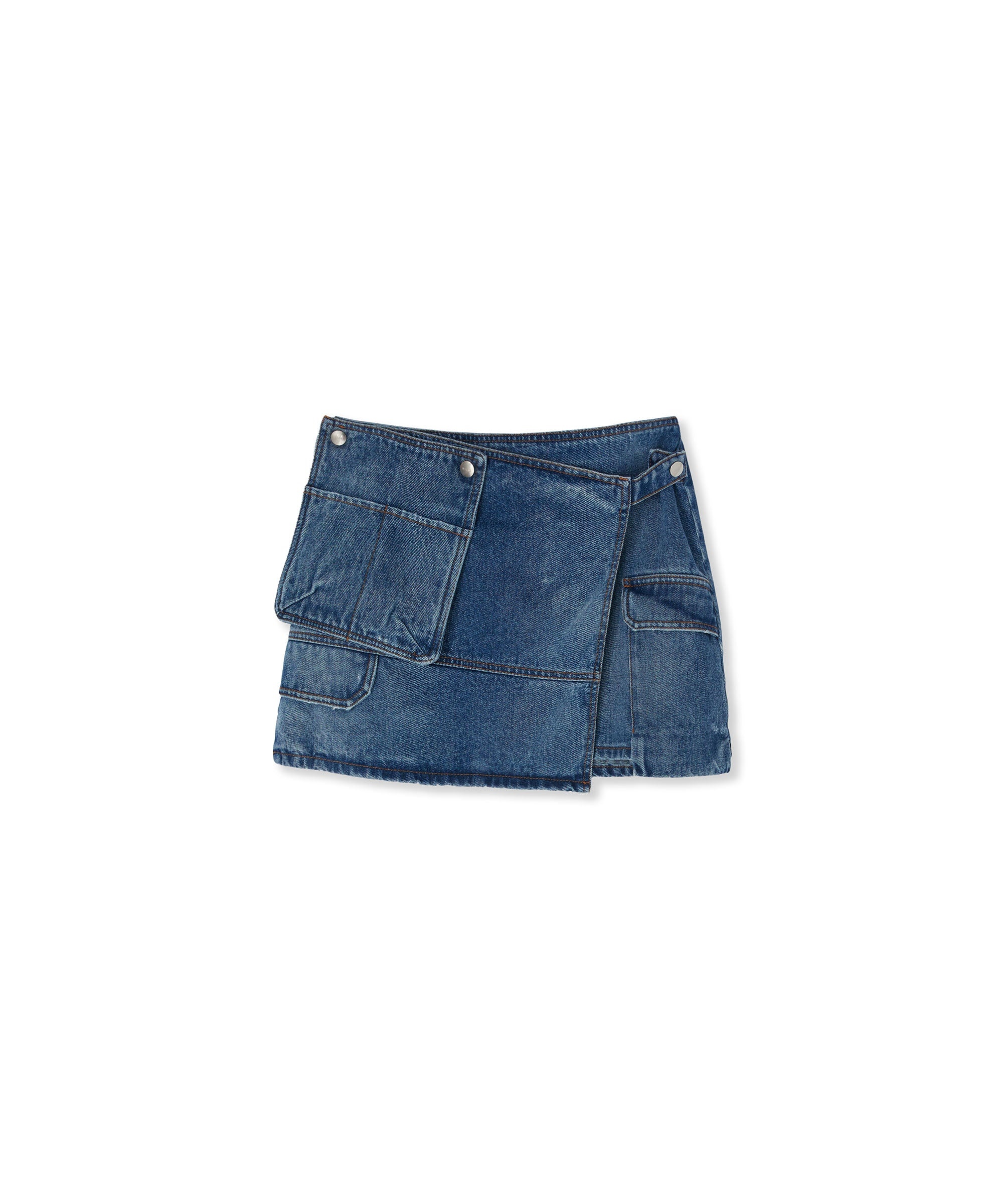 Blue denim pocketed mini skirt