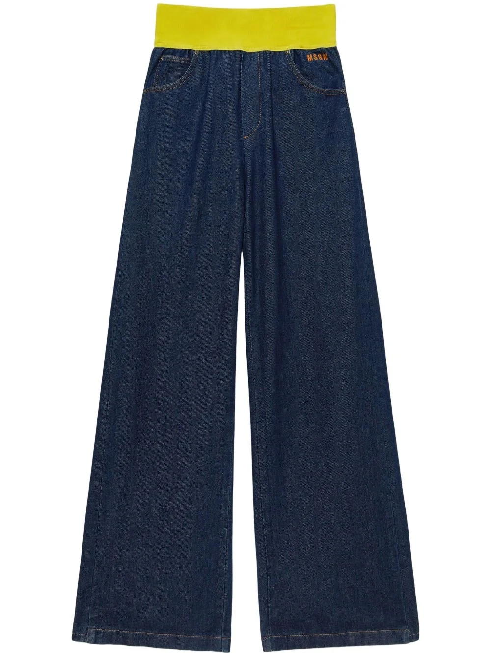 wide-leg jeans Highlights - Indigo blue - Elasticated waistband - Classic five pockets - Embroidered logo to the side Imported Composition Cotton 100% Washing instructions Read Manufacturer Guidelines