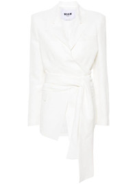 bow-detail blazer Highlights - White - Linen blend - Slub texture - Bow detailing - Layered details - Notched lapels - Shoulder pads - Long sleeves - Faux buttoned-cuff sleeves - Chest welt pocket - Two front flap pockets - Full lining - Front button fastening Made in Italy Composition Outer: Linen/Flax 56%, Viscose 44% Lining: Polyester 100% SIZE & FIT Model measurements Height 5 ft 11 in(1.8 m) Bust/Chest 33.07 in(84 cm) Hips 37.4 in(95 cm) Waist 25.19 in(64 cm) FittingInformation Designed to be unstructured, offering a loose fit throughout The tie fastening gives an adaptable and personalised fit Made from a midweight non-stretch fabric This piece fits true to size – take your usual size