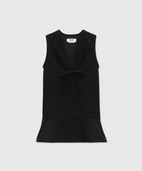 Sleeveless minidress in double crepe. Deep V-neckline and bow detail on the front. The hem opens into a structured flounce that creates volume and movement. Invisible zip on the back. The model is wearing size S/40. CODE: 3941MDA06-257608-99 Details and fit - 95% PL / 5% EA