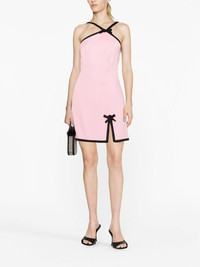 contrast-trim minidress A showcase of MSGM's softer side, this minidress arrives in a light pink hue with a deep black trim. The thigh-skimming silhouette is punctuated with delicate bows at the straps and slit. Highlights - Light pink/black - Bow detailing - Contrasting trim - Asymmetric neck - Thin shoulder straps - Rear zip fastening - Thigh-length - Straight hem Made in Italy Composition Lining: Polyester 100% Outer: Viscose 100% SIZE & FIT Model measurements Height 5 ft 9 in(1.75 m) Bust/Chest 31.49 in(80 cm) Hips 34.05 in(86.5 cm) Waist 24.21 in(61.5 cm) FittingInformation Designed for a slim fit that sits just away from the body offering a close yet comfortable fit Made from a midweight non-stretch fabric This piece fits true to size – take your usual size Washing instructions Dry Clean Only