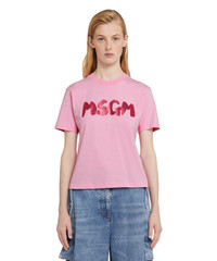 Cotton crewneck t-shirt with new MSGM brushed logo