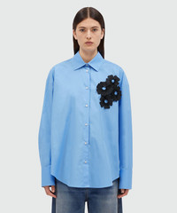 Light blue poplin shirt with floral applications