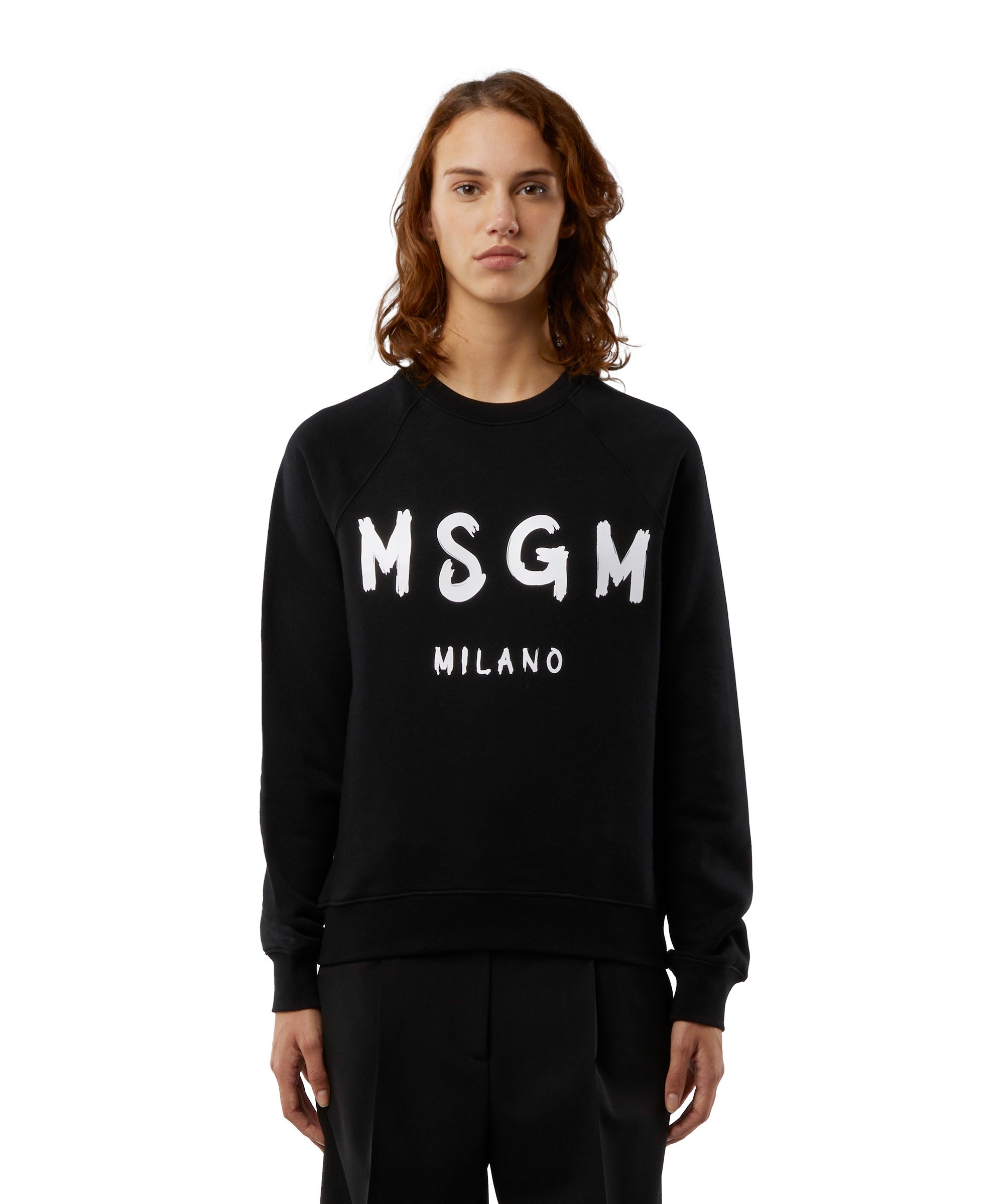 Crew neck cotton sweatshirt. The garment is made in a solid colour with a brushed logo on the front. The long sleeves end in a ribbed cuff. The collar and hem are also ribbed. The inside is cotton gauze. The fit is regular. The model (female) is wearing a size S / 40 (Height : 176 cm. - Bust : 78 cm. - Chest : 59 cm. - Hips : 89 cm.) CODE: 2000MDM513-200001-99 Details and fit - 100% CO - The model (female) is wearing a size S / 40 (Height : 176 cm - Bust : 78 cm - Chest : 59 cm - Hips : 89 cm) - For information about a product, care and materials, please call us at +39 02 9475 5343 or contact us through Chat. You can also get help by filling out the form in the Help section.