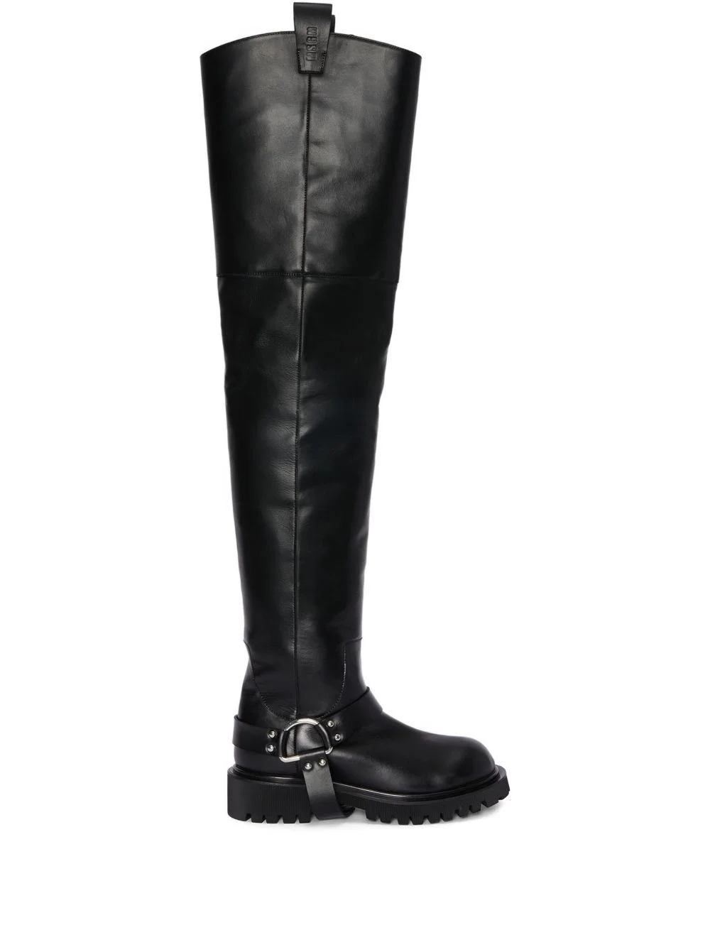 D-ring over-the-knee boots Highlights - Black - Slip-on style - Ridged rubber sole - Double pull-tab at the opening - Silver-tone hardware Made in Italy Composition Outer: Leather 100% Lining: Leather 100% Sole: Rubber 100%