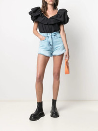 distressed-effect denim shorts A summertime essential. No not SPF, but this effortlessly cool pair of distressed-effect denim shorts from MSGM. Arguably just as important... Made in Italy Composition Outer: Cotton 100% Lining: Polyester 65%, Cotton 35% SIZE & FIT Model measurements Height 5 ft 9 in(1.75 m) Bust/Chest 32.67 in(83 cm) Hips 36.22 in(92 cm) Waist 24.8 in(63 cm) FittingInformation This piece fits true to size. We recommend you get your regular size Cut for a slim fit Made with a mid-weight non-stretch fabric Washing instructions Machine Wash
