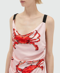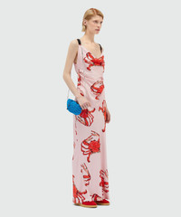 Long pink satin dress with "King crab" print