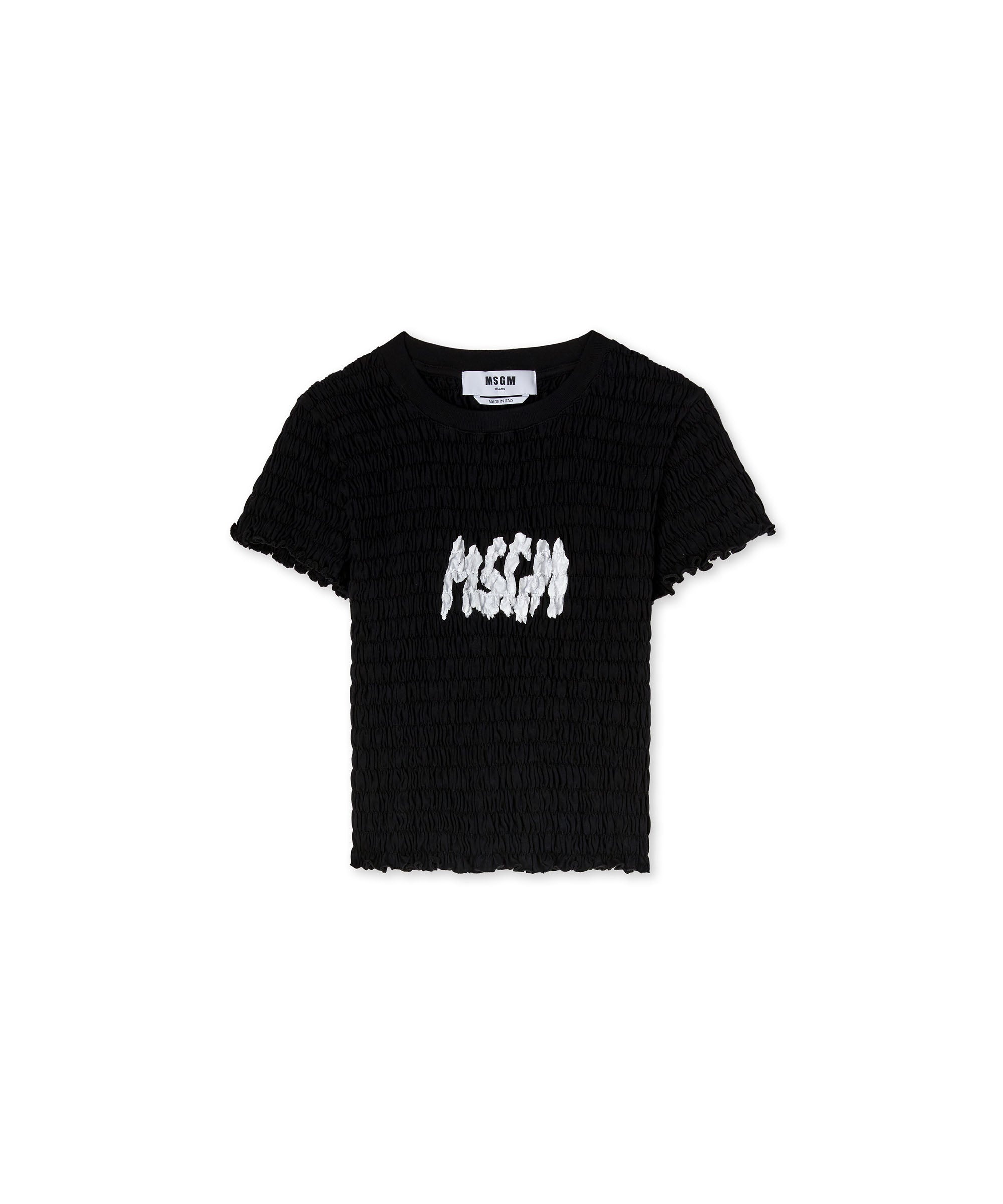 T-shirt in embossed fabric with new MSGM brushstroke logo. Snug fit. CODE: 3641MDM105-247002-99 Details and fit - 100% CO - Model wears size S / 40 (Height: 178 cm - Chest: 80 cm - Waist 59 cm - Hips: 90 cm) - For information about a product, care and materials, please call us at +39 02 9475 5343 or contact us through Chat. You can also get help by filling out the form in the Help section.