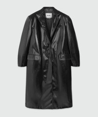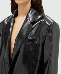 Black patent leather coat with structured shoulders