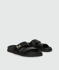 Flat sandals in black smooth leather decorated with the "TheMwave" logo in silver metal. Upper composed of two adjustable bands with velcro. Shaped footbed and EVA rubber sole. The model wears sizes 37 and 40 CODE: 3841MDS455-974-99 Details and fit - Upper:100%calf leath