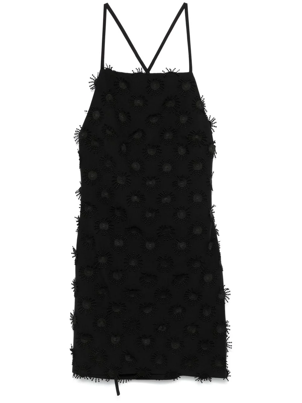floral-applique mini dress Highlights - Black - Rear tie fastening - Concealed rear hook and zip fastening - Square neck - Rear criss-cross straps Made in Italy Composition Cotton 100% SIZE & FIT Model measurements Height 5 ft 11 in(1.8 m) Bust/Chest 31.49 in(80 cm) Hips 36.61 in(93 cm) Waist 24.4 in(62 cm) FittingInformation Designed for a slim fit that sits just away from the body offering a close yet comfortable fit The adjustable tie waist gives a more adaptable and personalised fit Made from a midweight non-stretch fabric