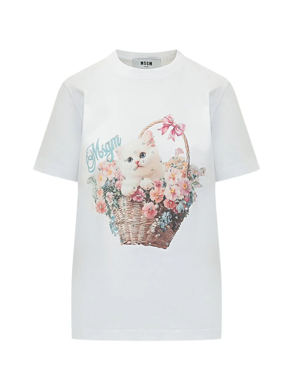 floral kitten graphic T-shirt Highlights - White - Graphic print - Round neck - Short sleeves Imported Composition Fabric 100% Washing instructions Read Manufacturer Guidelines