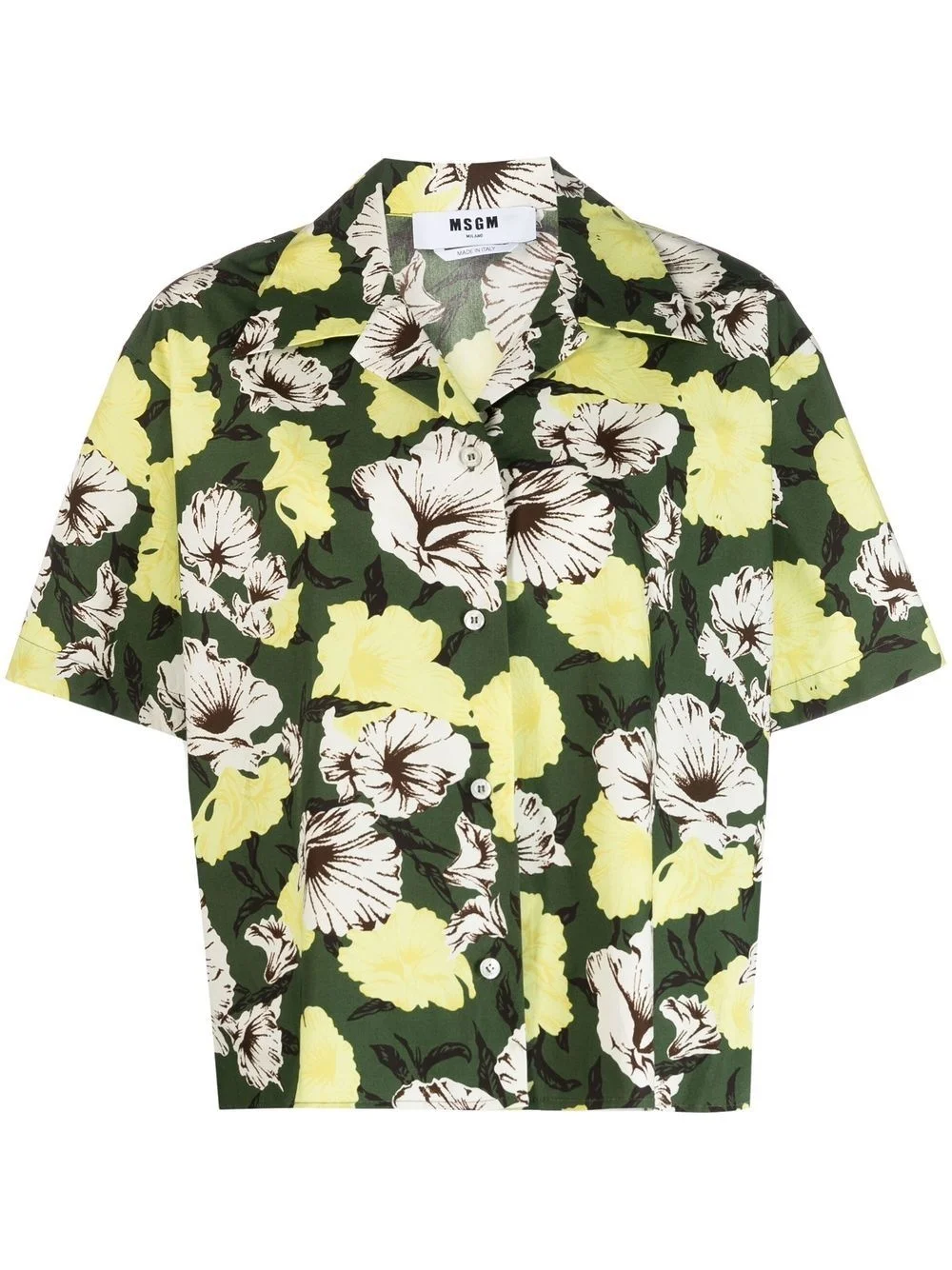 floral-print short-sleeve shirt green cotton all-over floral print classic collar front button fastening short sleeves straight hem Made in Italy Composition Cotton 100% SIZE & FIT Model measurements Height 5 ft 10 in(1.78 m) Bust/Chest 31.49 in(80 cm) Hips 36.22 in(92 cm) Waist 25.59 in(65 cm) FittingInformation This piece fits true to size. We recommend you get your regular size Cut for a loose fit Made with a mid-weight non-stretch fabric Washing instructions Hand Wash