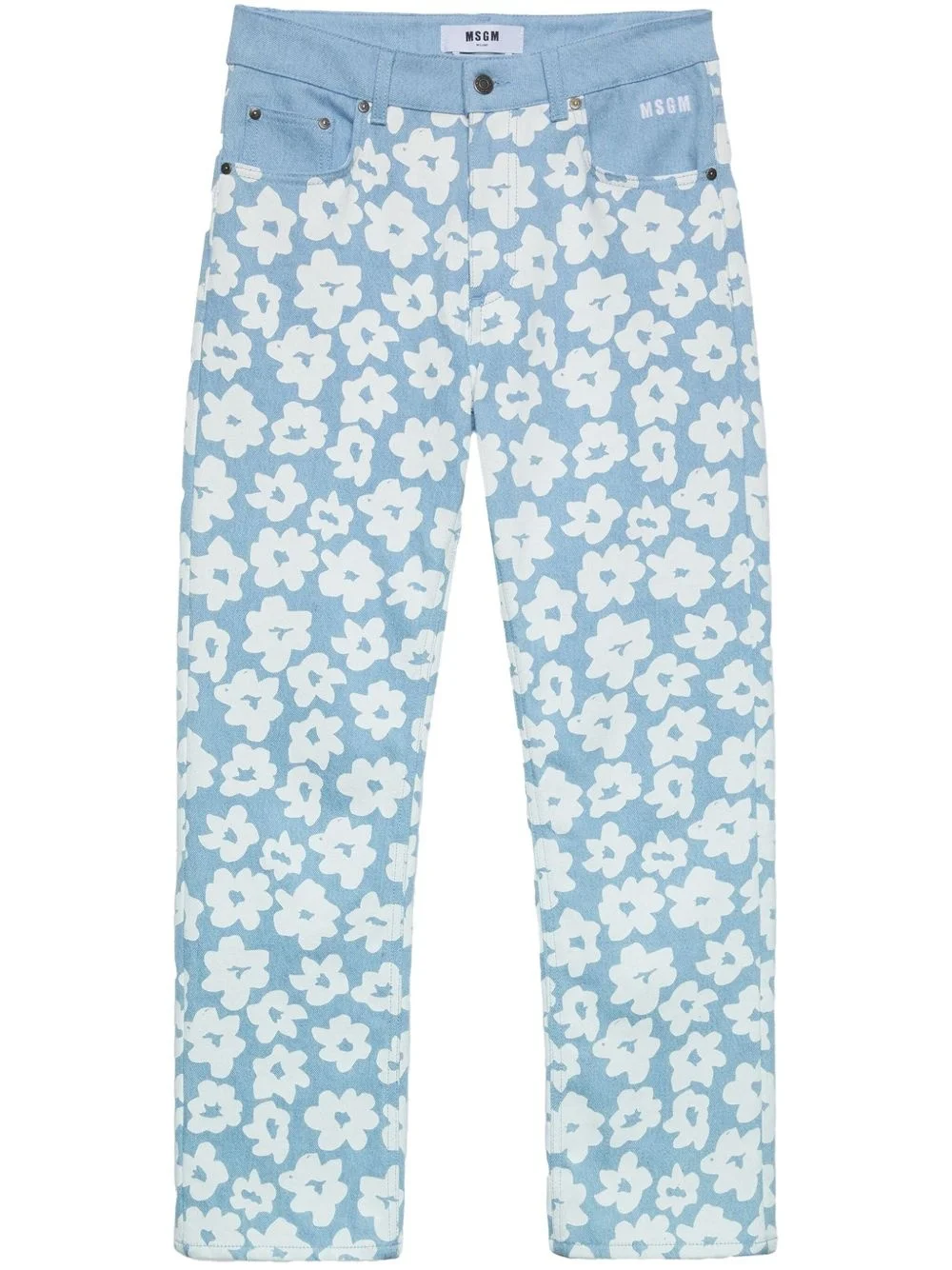 floral-print straight pants Highlights - Light blue - Concealed fly and button fastening - Belt loops - Classic five pockets Made in Italy Composition Fabric 100%