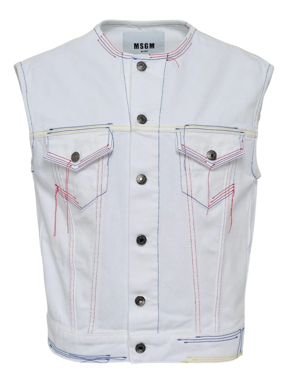 contrast-stitch denim vest