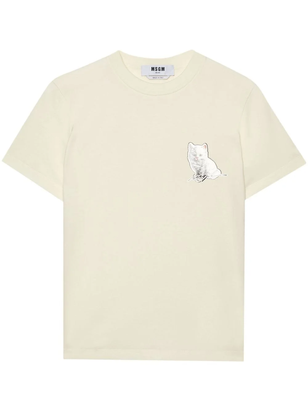 graphic-print cotton T-shirt Highlights - Off-white - Cotton - Jersey texture - Round neck - Graphic print at the chest - Logo print at the chest - Short sleeves - Drop shoulder - Straight hem Made in Italy Composition Cotton 100% SIZE & FIT FittingInformation Designed for a relaxed fit, this piece allows for comfort and movement when worn Made from a midweight non-stretch fabric, this piece offers minimal elasticity when worn This piece fits true to size – take your usual size
