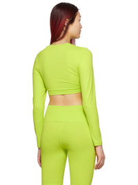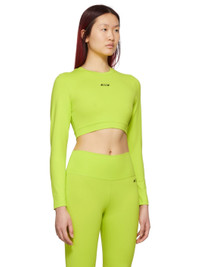 Long sleeve stretch nylon jersey sport top in green. · Logo printed in black at chest · Rib knit crewneck collar and cropped hem Supplier color: Lime 91% polyamide, 9% elastane.