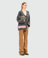 English rib-knit cardigan with needle-punched hem. V-neck and front button closure. MSGM label on the back. Oversized fit. The model is wearing size S/40. CODE: 3941MDM220-257777-97 Details and fit - 50% WO / 50% PC