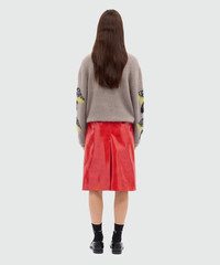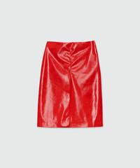 Red vinyl midi skirt